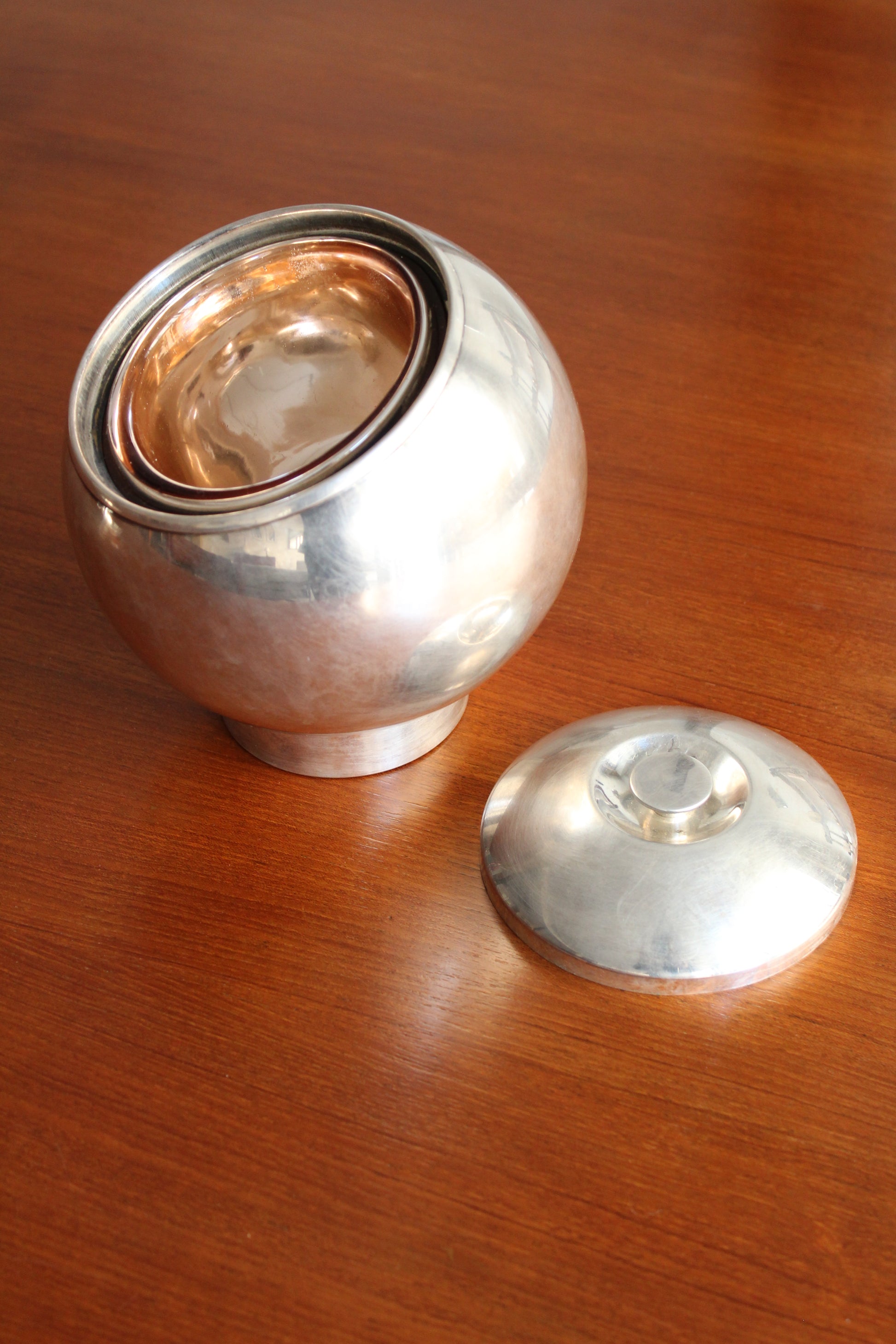 Silver-plated metal, glass and copper